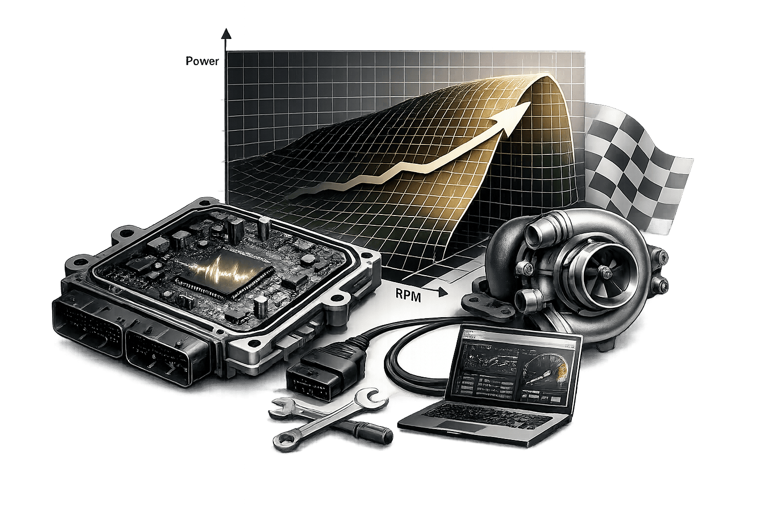 Kennfeldoptimierung und Chiptuning für mehr Leistung, bessere Effizienz und ein optimiertes Ansprechverhalten. Individuell auf Ihr Fahrzeug abgestimmt. Kontaktieren Sie uns gern für eine unverbindliche Erstberatung.